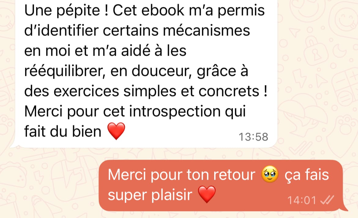 Si cet ebook peut t'aider à relâcher la pression, à te parler plus doucement, et à te sentir moins seule dans ce que tu traverses...